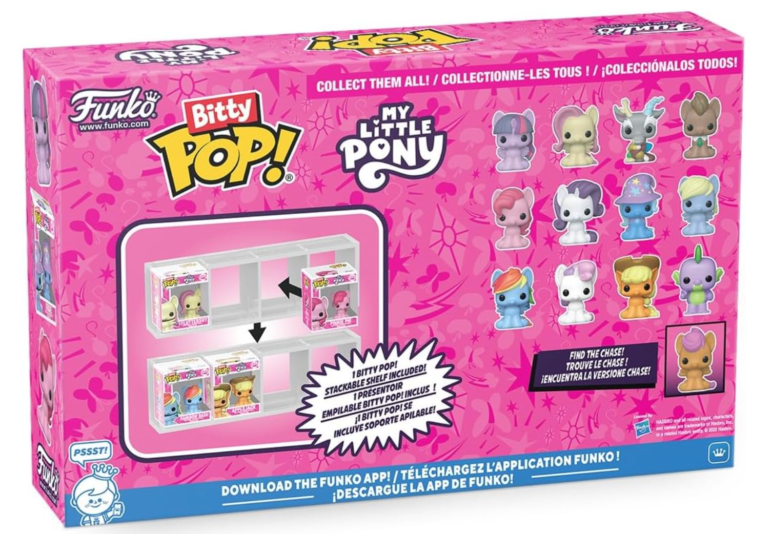 Each Bitty Pop! captures the charm and individuality of these beloved ponies, from Pinkie Pie’s energetic fun to Rarity’s elegance, Trixie’s show-stopping flair, and Derpy’s lovable charm. Their compact size makes them perfect for display, collecting, or adding a touch of Equestria to your desk, shelf, or collectible lineup.